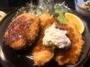 メンチカツ1つとチキンカツ2つでボリュームたっぷり。タルタルソースが更に美味しくしますね。